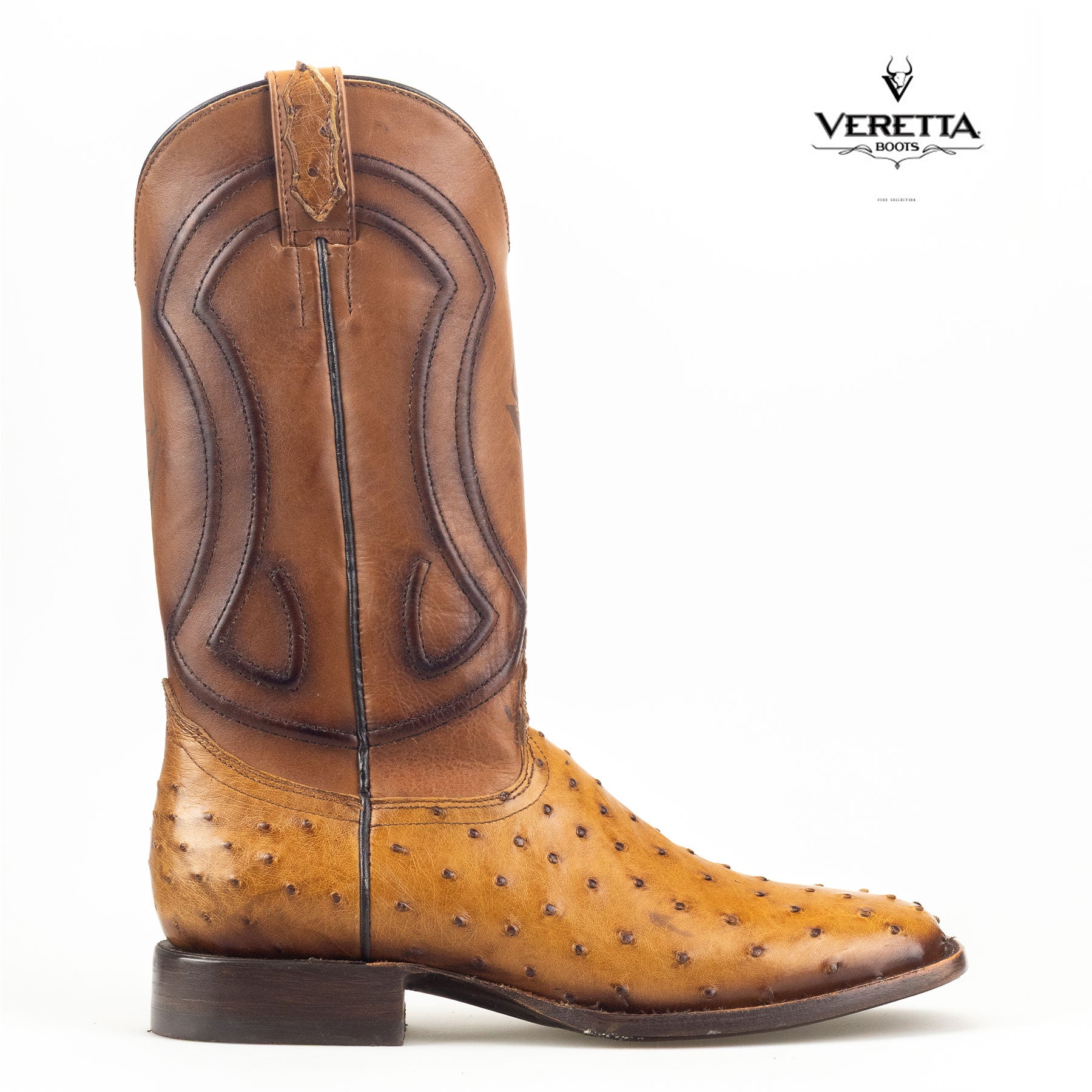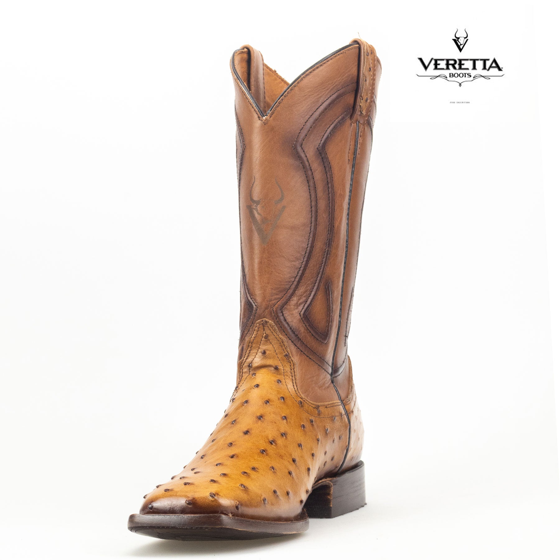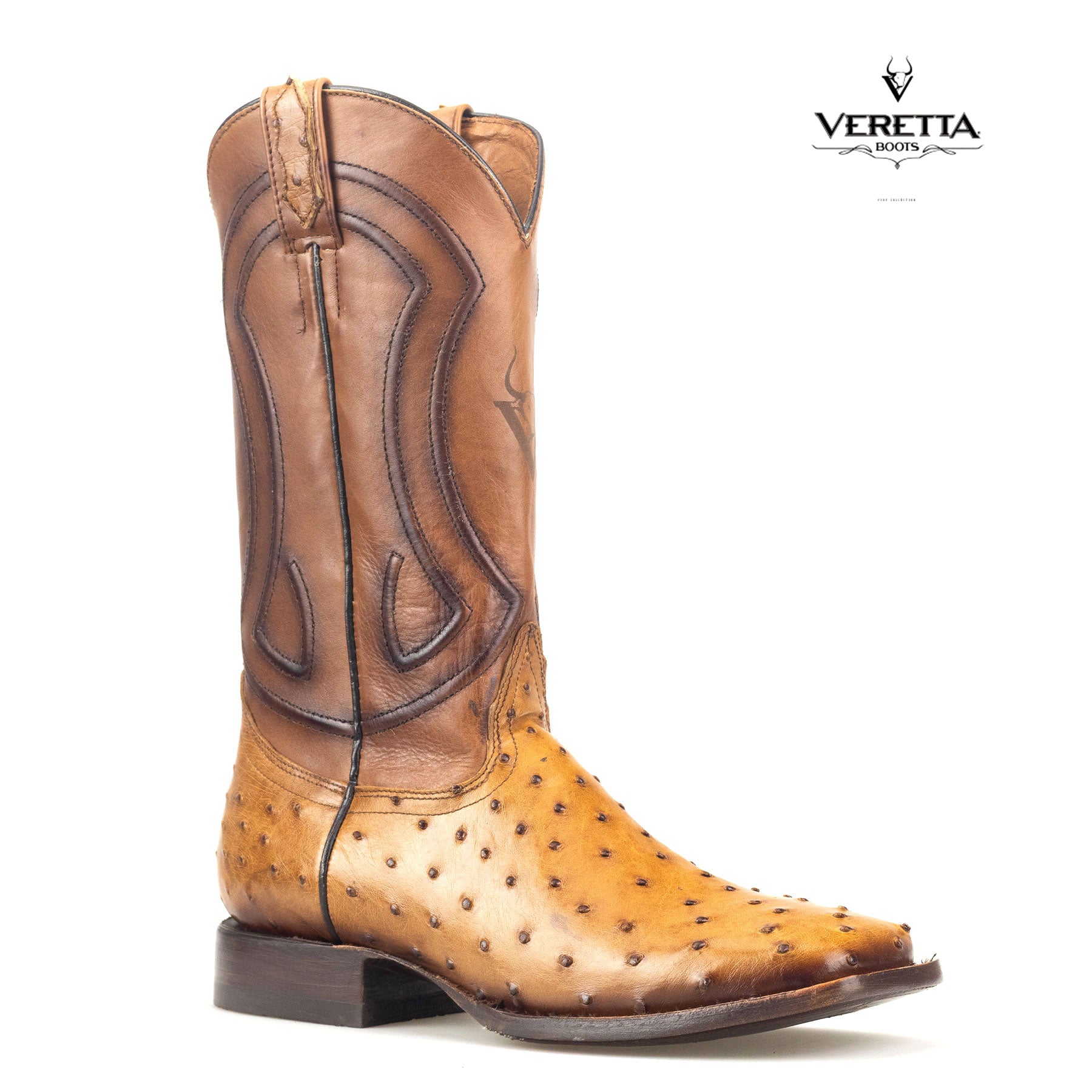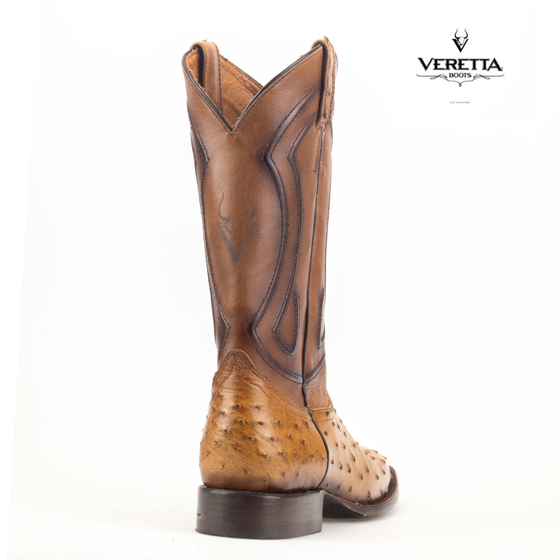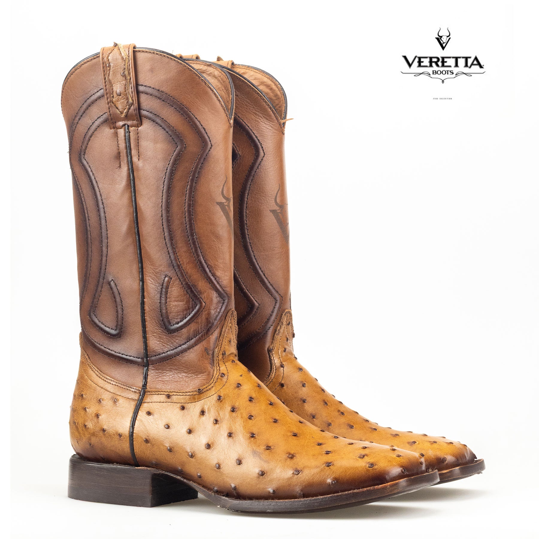 Bravo Camel | Bota Vaquera Exótica de Piel de Avestruz Veretta para Hombre